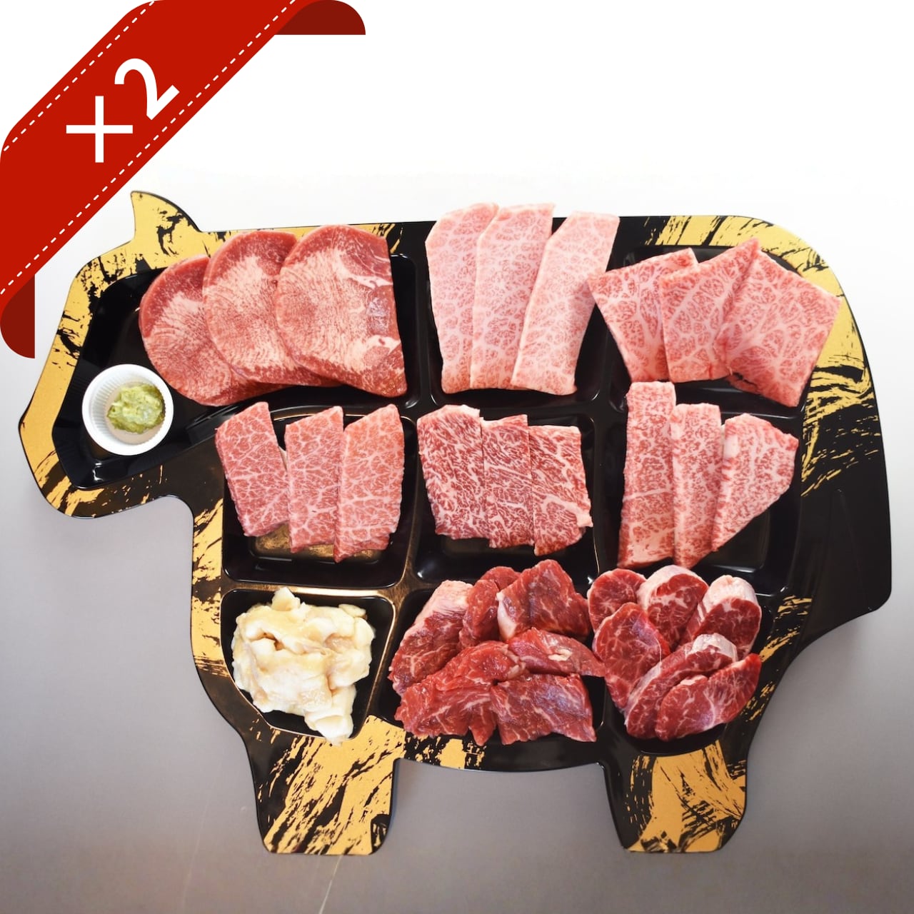 当店で大人気の「牛型プレート」に豪華9種類のお肉を盛り付けました。